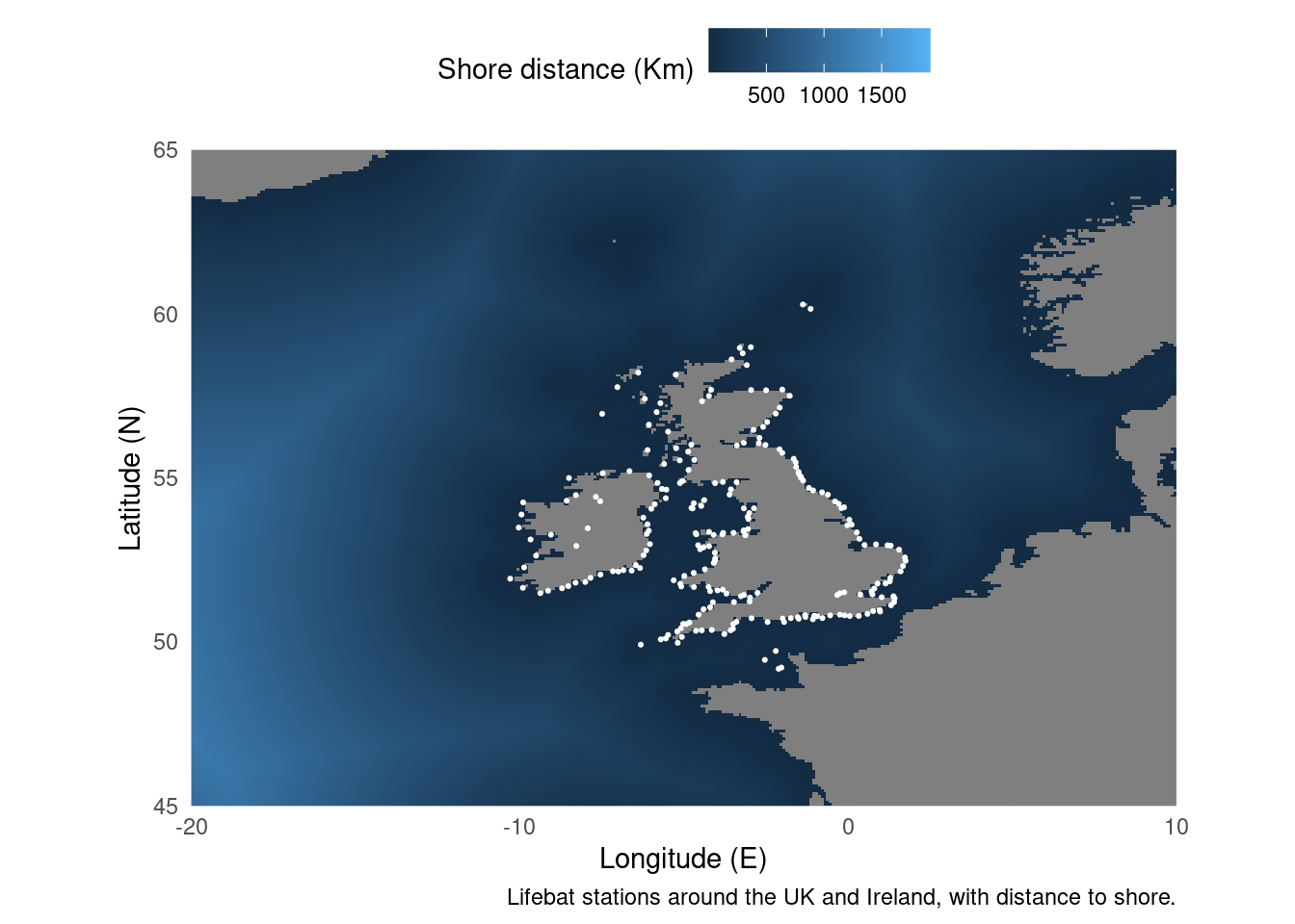 caption = "Lifebat stations around the UK and Ireland, with distance to shore.",
